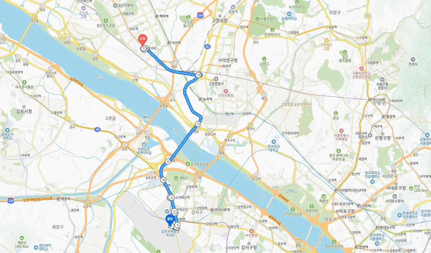 김포공항 도착 후 150번 도시형 버스 이용(국내선 청사 -> 안산공원(중) 하차)
